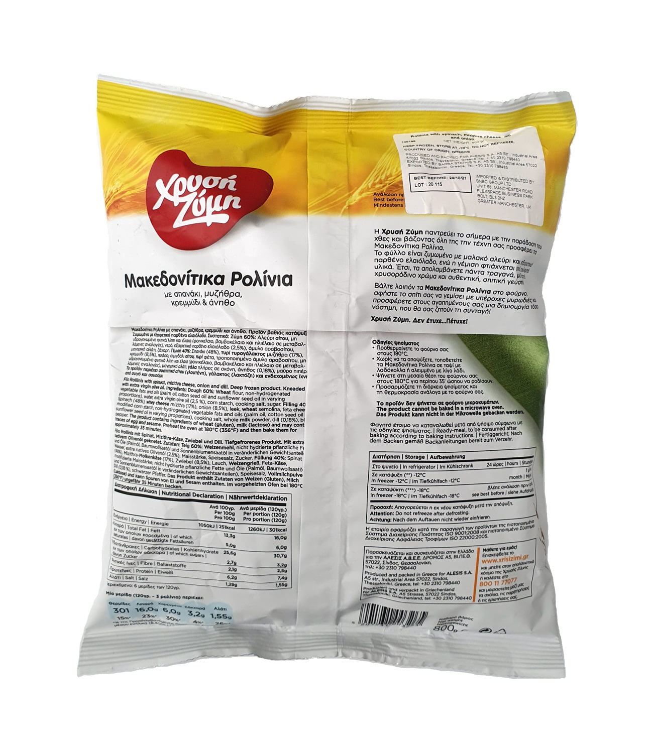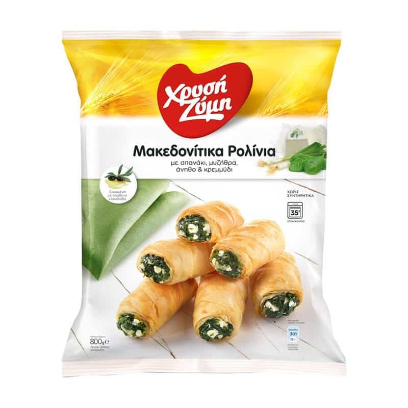 Chrysi Zymi Rollini with Spinach, available in an 800g package, offers an authentic taste of Greek cuisine. These Macedonian-style rollini are made with extra-virgin olive oil, ensuring they are always crispy with a warm golden colour and wonderful flavour.