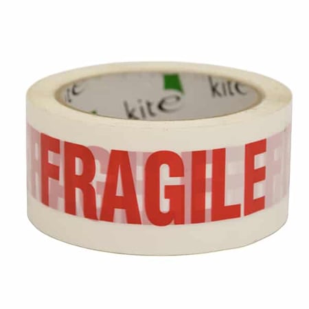 • The tape is printed with the word “FRAGILE” in bold, making it easily noticeable. This ensures that handlers are aware of the delicate nature of the contents.