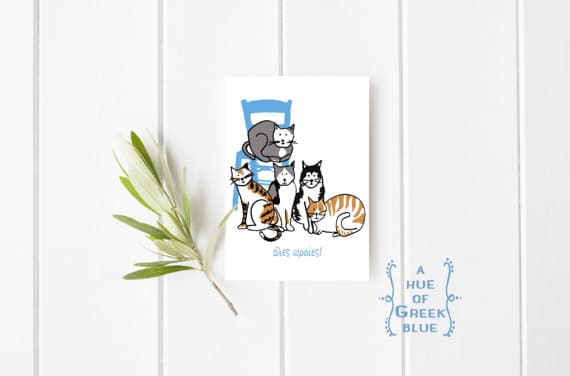 This is one of four Greek Cat postcard designs available.