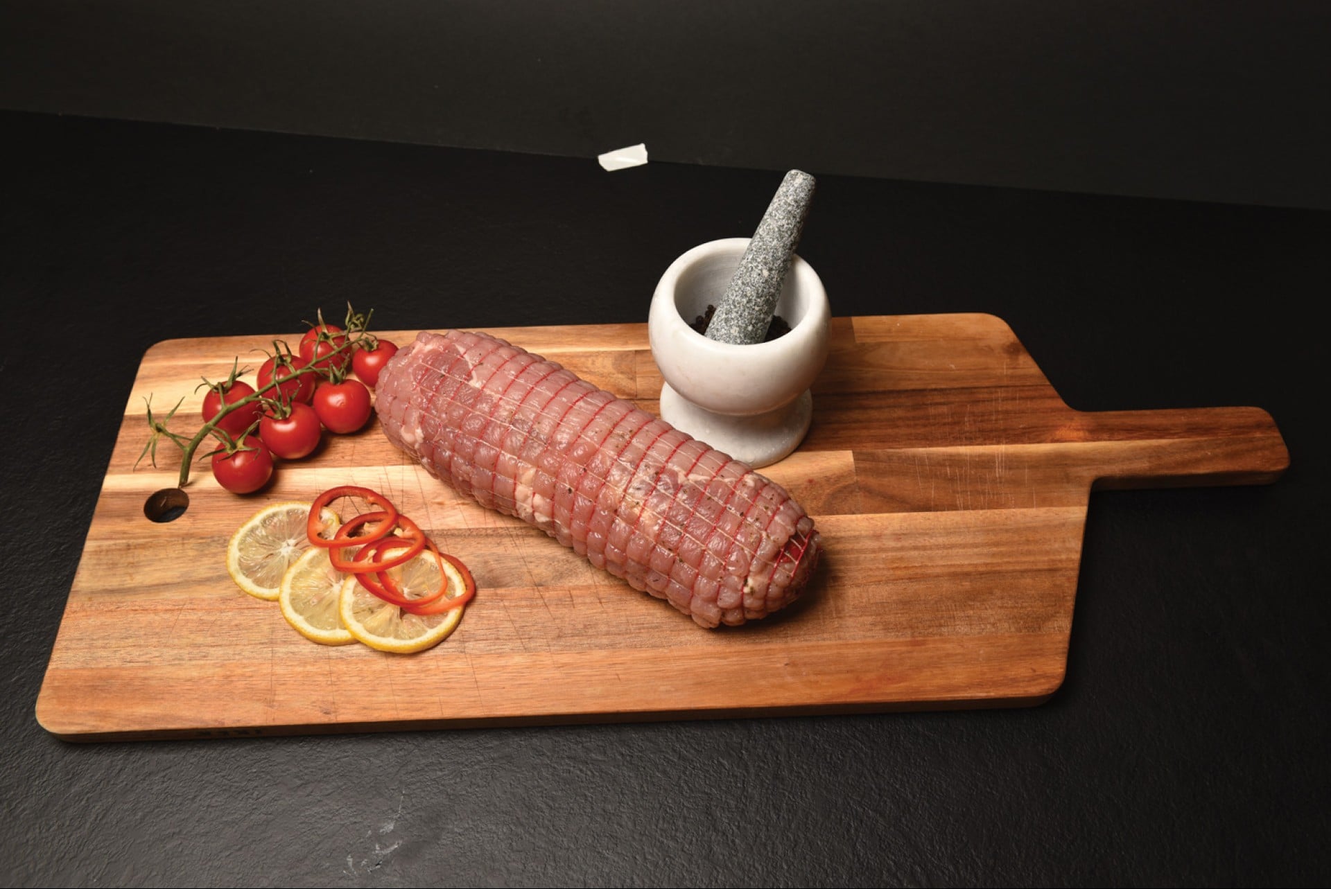 Ρολό από εκλεκτό χοιρινό μπούτι χωρίς λίπος, γεμιστό με φρέσκα λαχανικά και ιδιαίτερη καρύκευση.