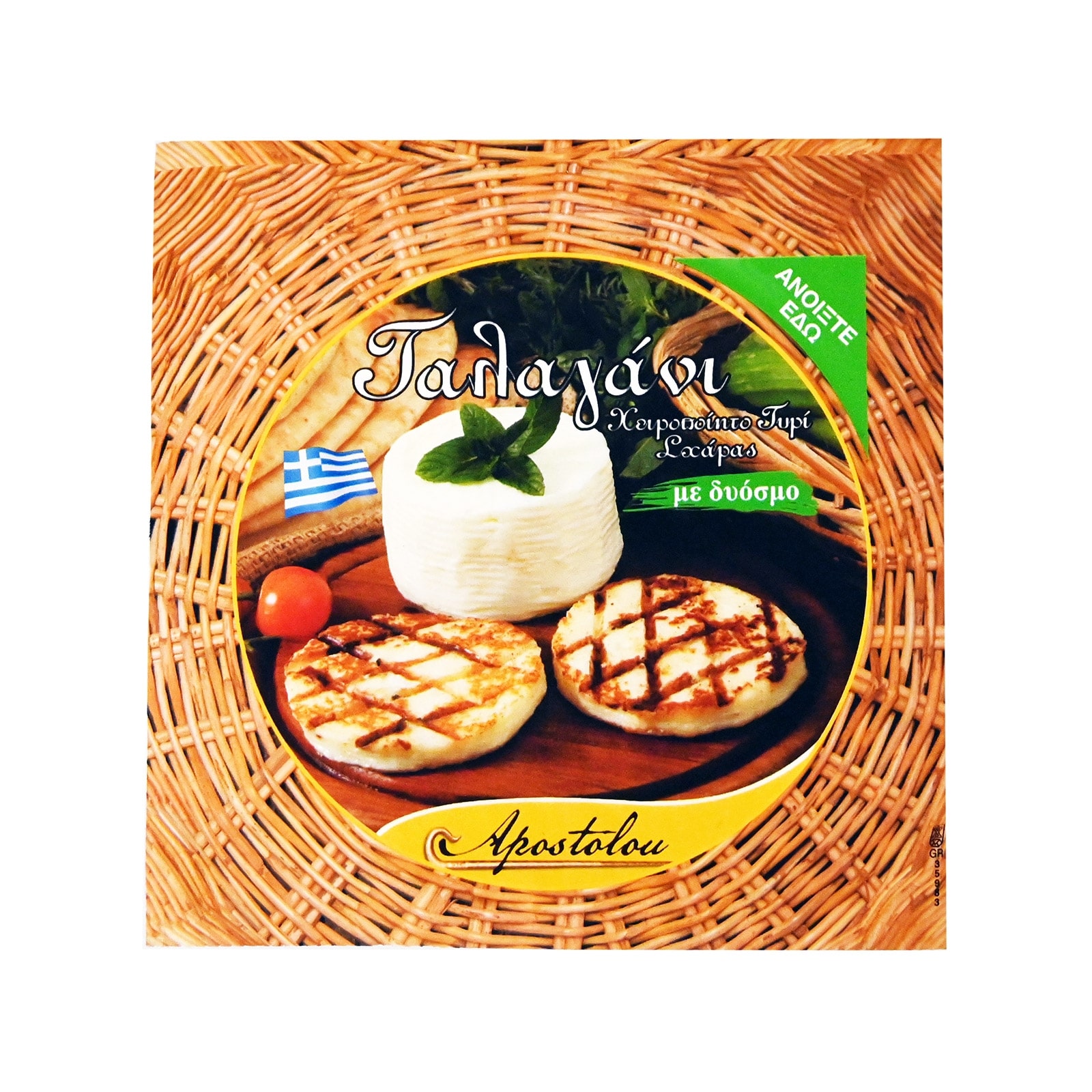 Greek Talagani cheese is often compared to Cypriot Halloumi, but Talagani has a smoother, creamier texture on the palate with a delicate and subtle mint flavour. The flavour can be further enhanced by marinating it in olive oil and herbs before cooking. Ideal grilled or fried like saganaki. 2 slices of 100g.
