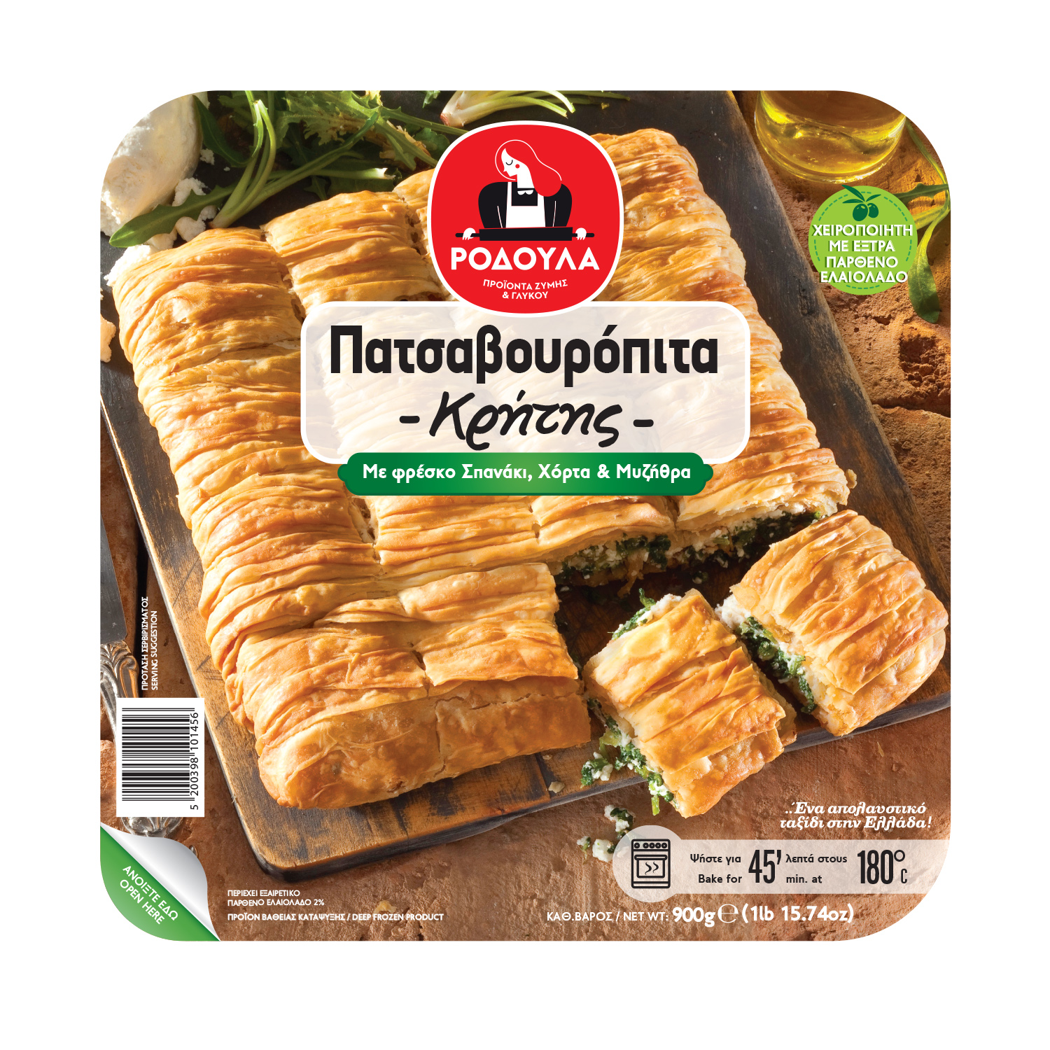 Crunchy pie with fresh spinach, fragrant aromatic herbs, mizithra and feta cheese, mixed with extra virgin olive oil, exhibit all the richness of our land