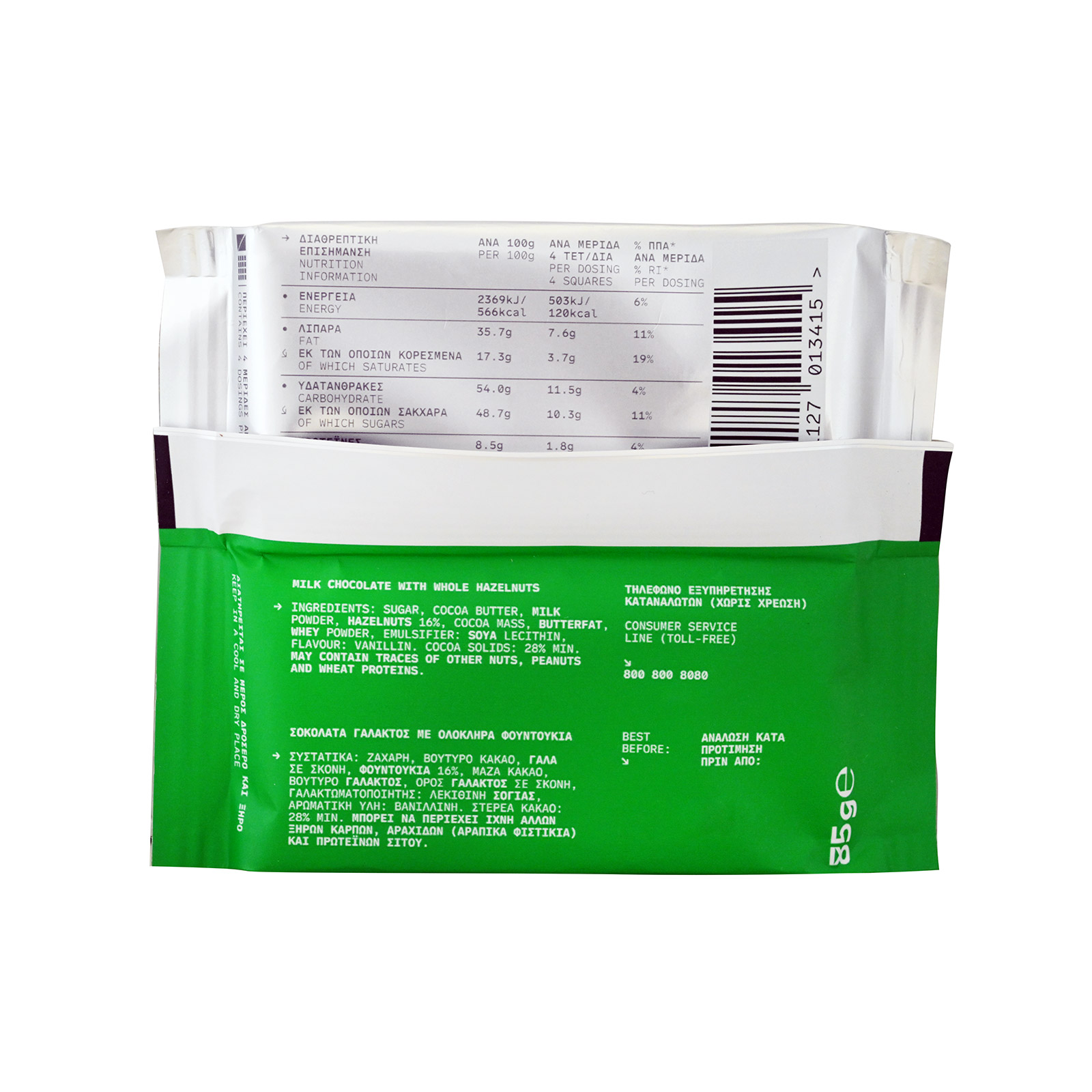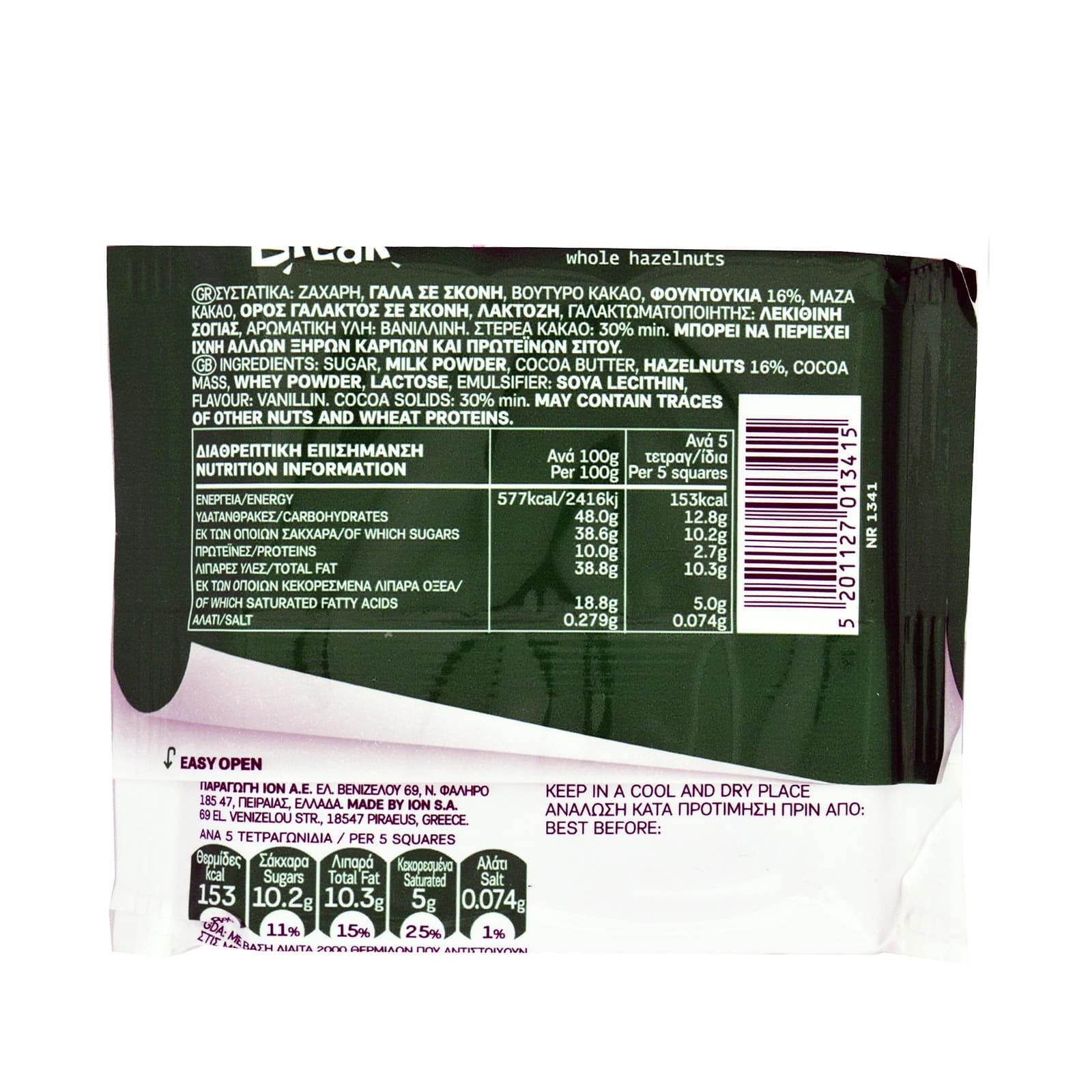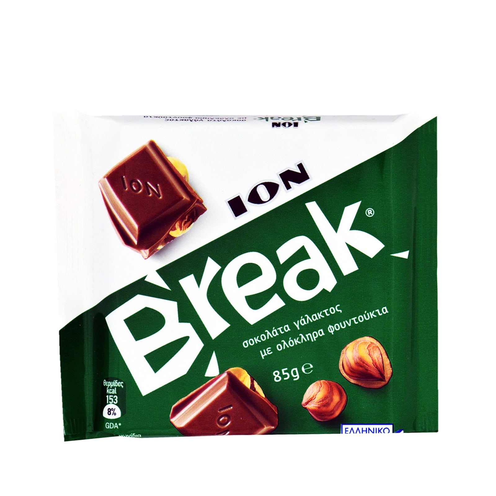 The natural hazelnut personality teams up with ION milk chocolate to create this crunchy Break temptation. Specially dedicated to all those chocolate & hazelnut lovers and sports devotees who expect more from chocolate. Available in 85 gr bars.
