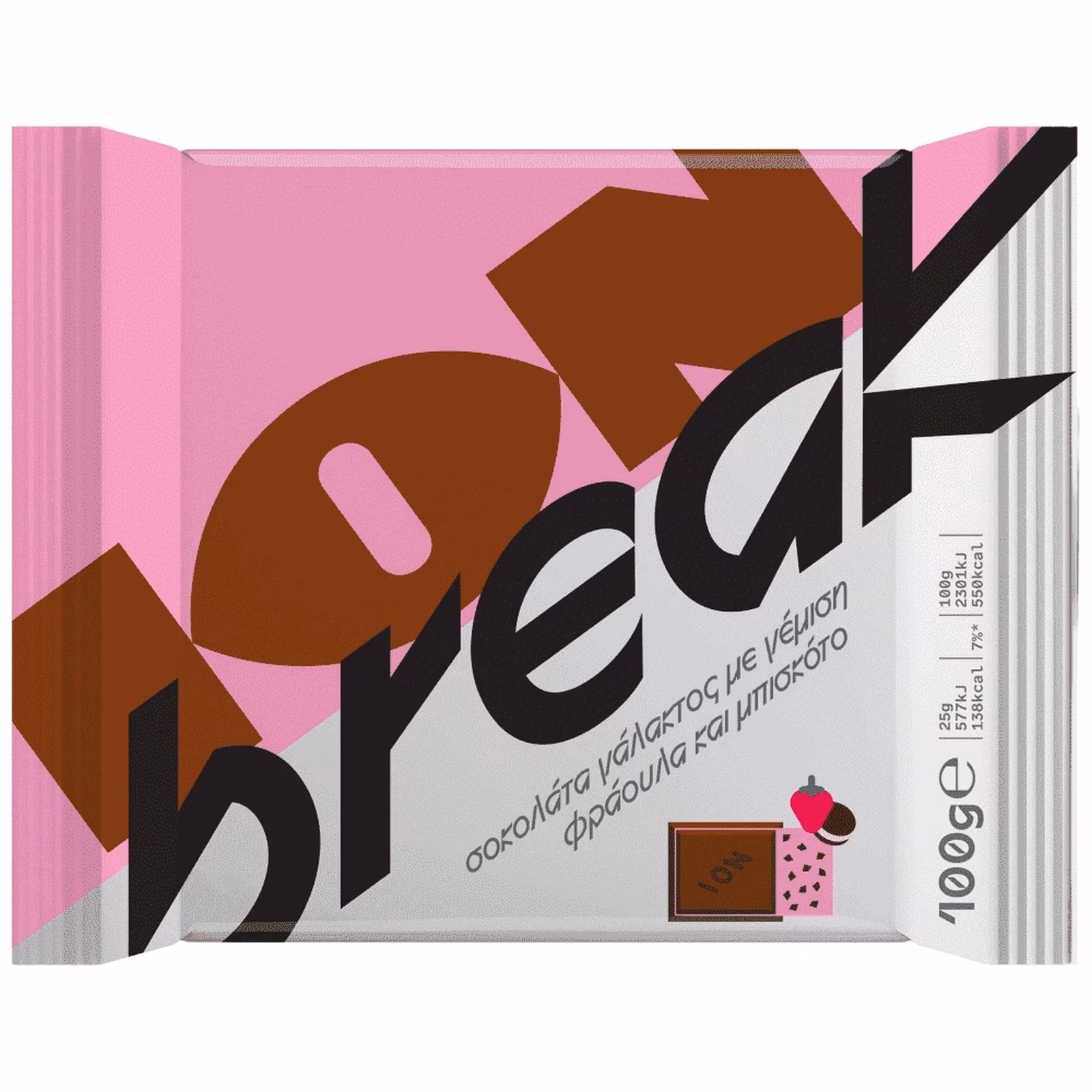 Ion Break Milk Chocolate with Strawberry and Biscuit 100g