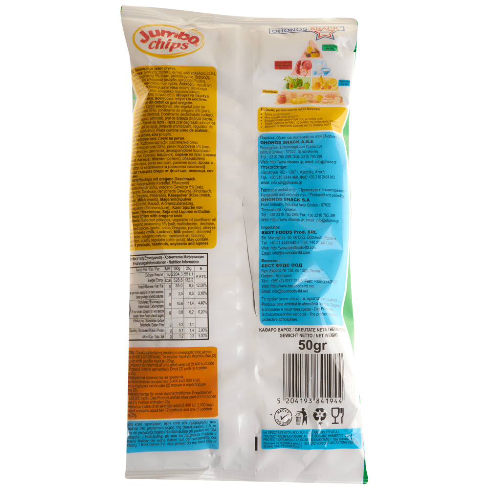 Delight in the aromatic richness of Jumbo Chips with Oregano. Crafted for a crisp, satisfying bite, these chips bring authentic Greek flavours to your snack time.