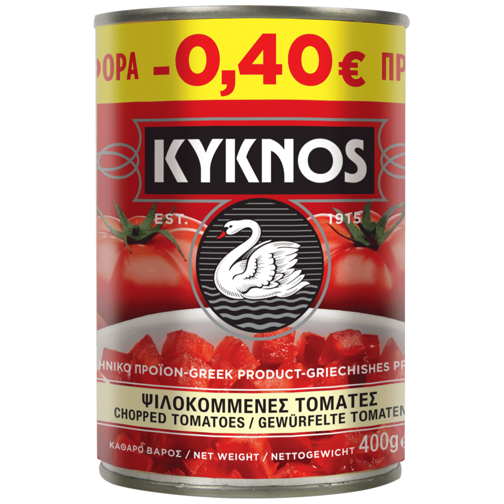 Kyknos Chopped Tomatoes / ฮฯฮบฮฝฮฟฯ ฮจฮนฮปฮฟฮบฮฟฮผฮผฮญฮฝฮตฯ ฮคฮฟฮผฮฌฯฮตฯ 400g. Elevate your dishes with the convenience and flavour of Kyknos Chopped Tomatoes.