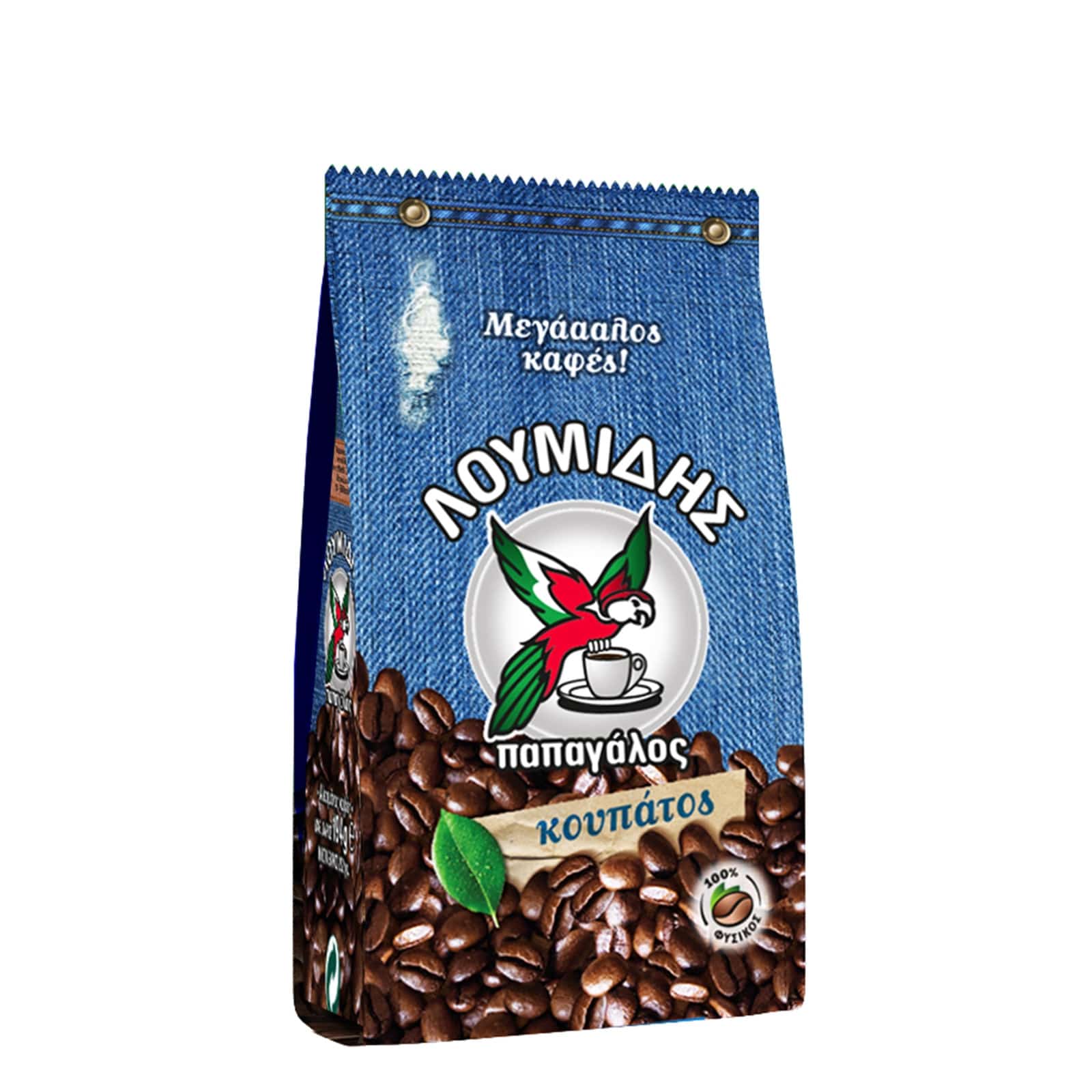 Μεγάααλος καφές! Με εκλεκτό, άριστης ποιότητας χαρμάνι, με άρωμα πλούσιο, απολαυστικό… Ο ιδανικός ελληνικός καφές για να τον πιεις σε κούπα χάρη στο ειδικό χαρμάνι του. Ο Λουμίδης Παπαγάλος Κουπάτος περιέχει την ιδανική αναλογία από τις ποικιλίες καφέ Arabica & Robusta και καβουρδίζεται ιδανικά, ώστε να προσφέρει μια απαλή γεύση και να αποτελεί την τέλεια επιλογή για διπλό ελληνικό καφέ! Ο καφές που απολαμβάνεις για ώρες με την παρέα σου είναι ο Λουμίδης Παπαγάλος Κουπάτος! Γιατί με δύο γεμάτες κουταλιές καφέ έχεις 1 υπέροχη κούπα ελληνικού που προσφέρει σε όλη την παρέα μεγάααλη απόλαυση. 100% φυσικός καφές | Διατηρείστε το σε μέρος δροσερό και στεγνό μακριά από προϊόντα με έντονη οσμή.