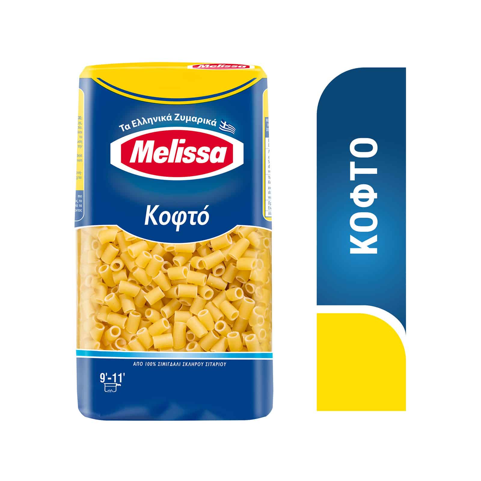 Το κοφτό μακαρόνι Melissa παράγεται από εκλεκτά ελληνικά σιτάρια αποκτώντας χρυσαφένιο χρώμα και αυθεντική γεύση. Από τα πιο αγαπημένα σχήματα κοντών ζυμαρικών, χρησιμοποιείται κυρίως σε σούπες με κρέας ή λαχανικά, με κόκκινες σάλτσες αλλά και σε νηστήσιμες συνταγές (π.χ. με χταποδάκι).