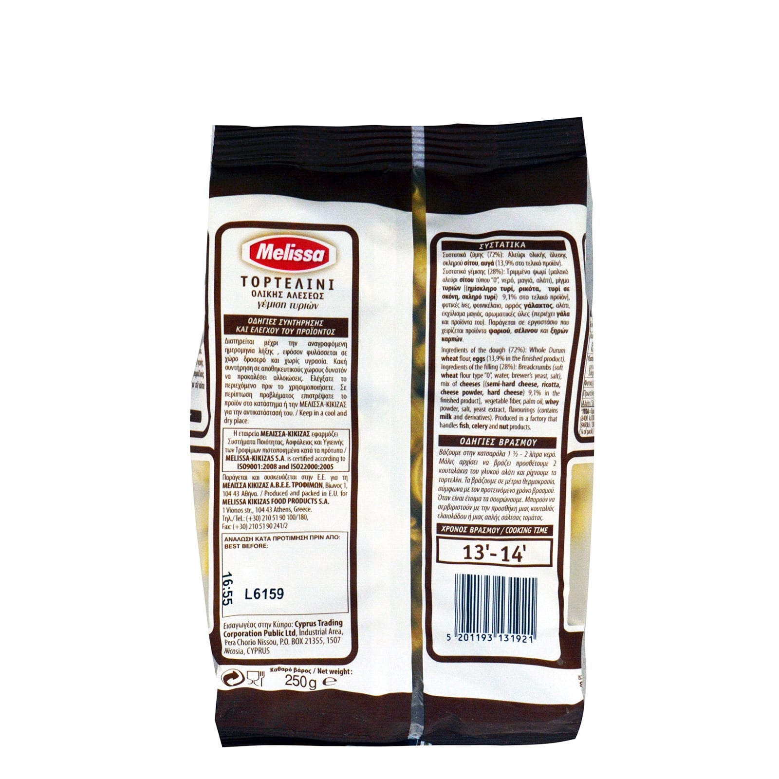 Tortellini Whole Wheat Melissa. Enjoy the favourite taste of Melissa tortellini with whole wheat to enjoy the whole grain without restrictions in a variety of shapes. Melissa Whole Wheat Pasta brings you all the benefits of a healthy and balanced diet. They have a rich taste as they are made from whole wheat. They are a source of fiber, and protein and are low in fat.