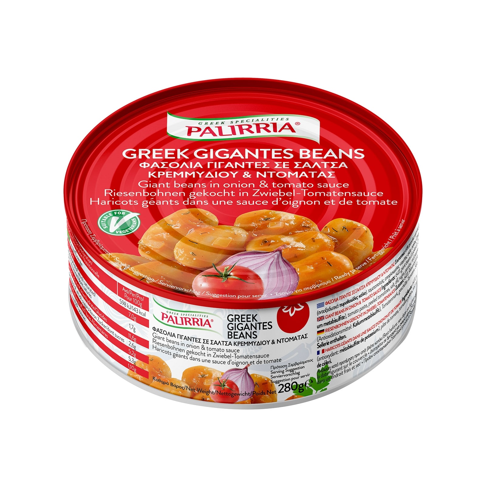 Indulge in the traditional essence of Mediterranean culinary artistry with Palirria Baked Giant Beans in Tomato Sauce. This convenient 280g can is filled with luscious giant beans baked to perfection, enveloped in a tangy and flavourful tomato sauce.