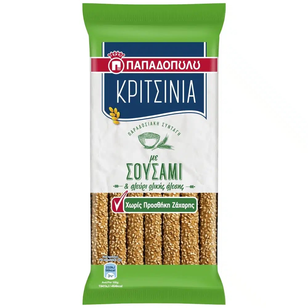 Papadopoulou Sesame Breadsticks Sugar-Free / ฮ ฮฑฯ€ฮฑฮดฮฟฯ€ฮฟฯฮปฮฟฯ… ฮšฯฮนฯ„ฯƒฮฏฮฝฮนฮฑ ฮฃฮฟฯ…ฯƒฮฌฮผฮน ฮงฯ‰ฯฮฏฯ‚ ฮ–ฮฌฯ‡ฮฑฯฮท 170g