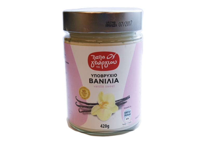 Experience the classic Greek treat with Papageorgiou Vanilla Ypovrychio. This traditional vanilla-flavored spoon sweet is known for its rich, creamy texture and delightful sweetness. Typically enjoyed by submerging a spoonful in a glass of cold water, it provides a refreshing and indulgent dessert. Perfect for those who appreciate the authentic flavors of Greece, this 420g jar is a must-have for your pantry, offering a deliciously sweet escape to Greek culinary tradition.
