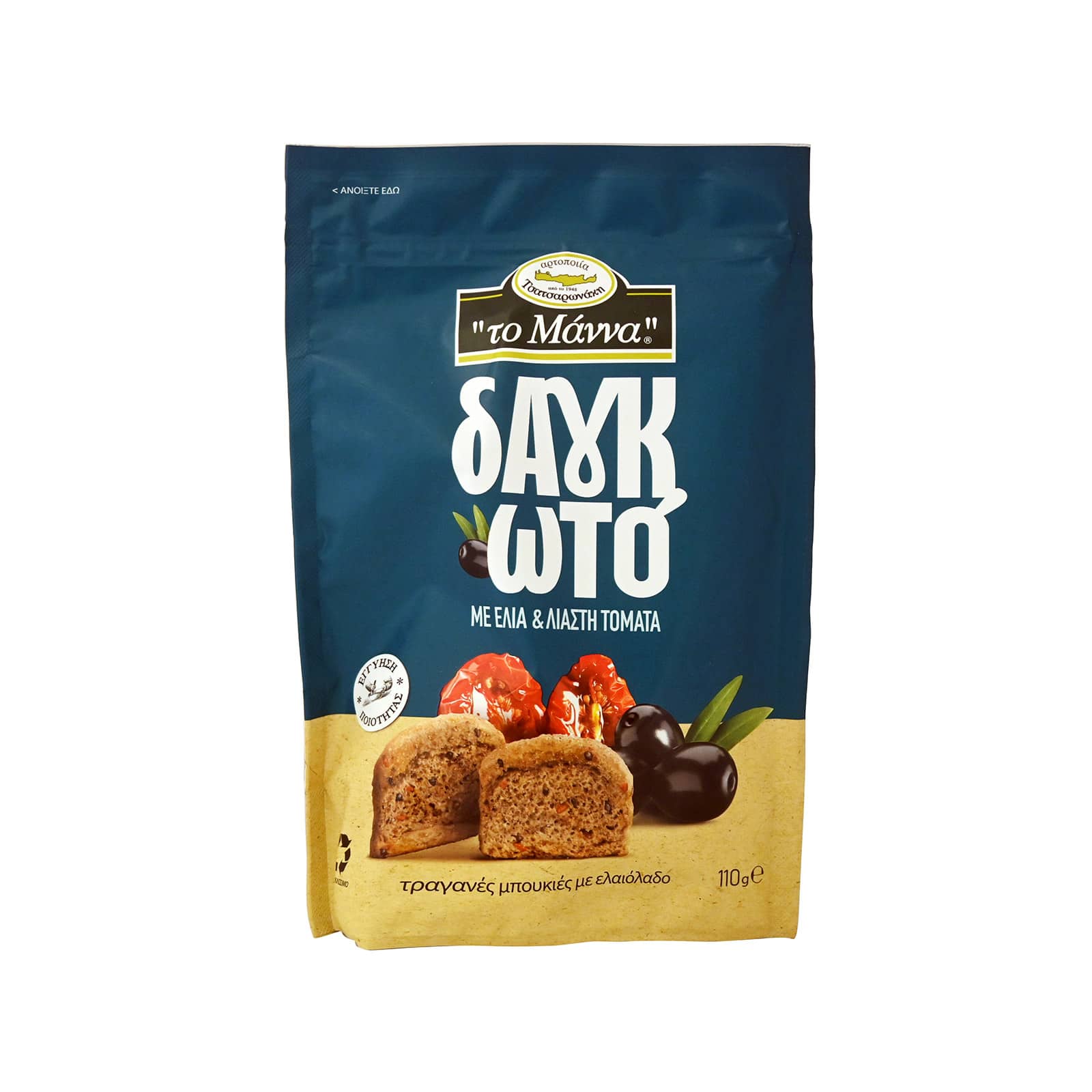 To Manna Rusks with Sundried Tomato and Olives
