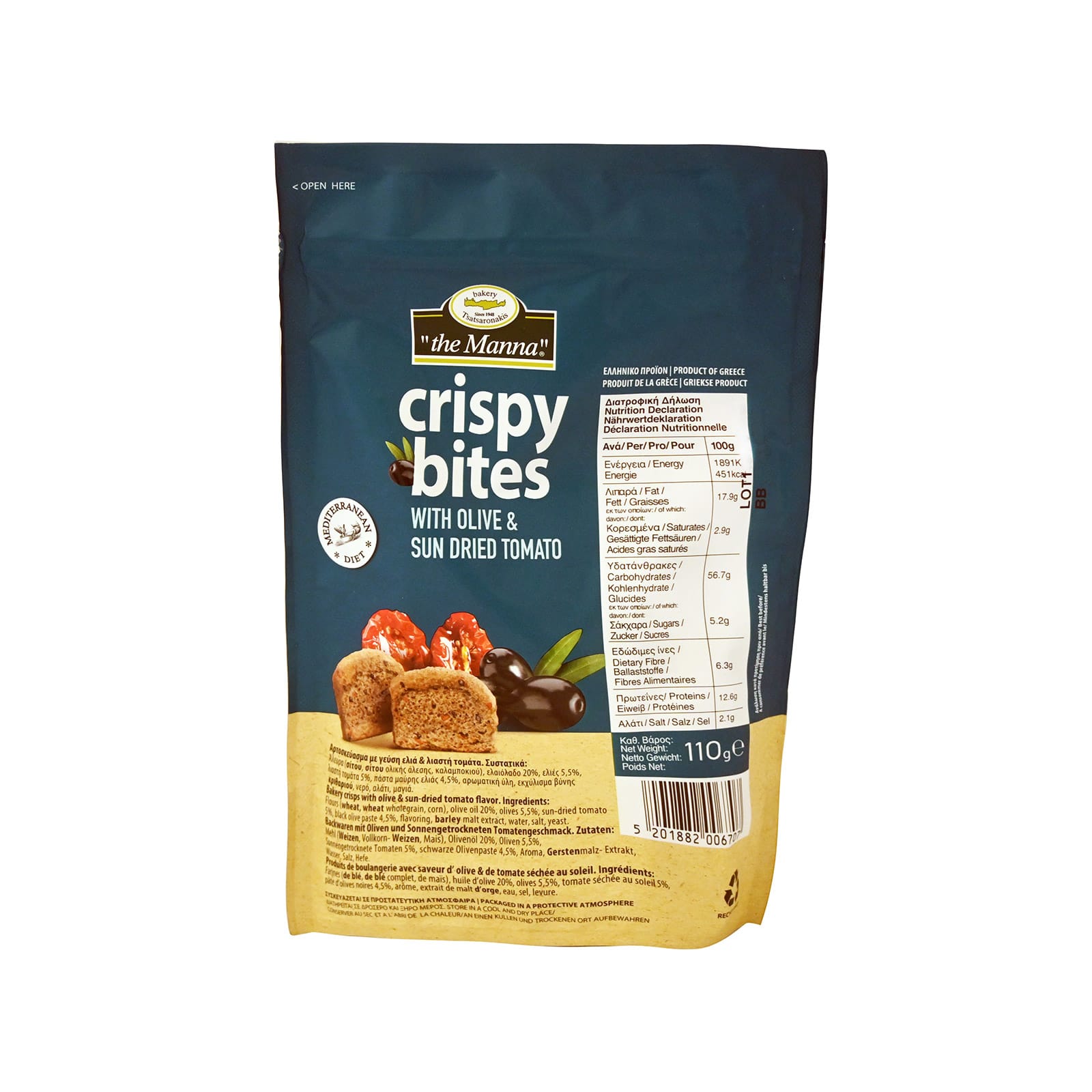 To Manna Rusks with Sundried Tomato and Olives are incredibly versatile. They can be enjoyed straight out of the pack, used as a base for canapรฉs, or crumbled over salads for added texture and flavor. They are also perfect for dipping into your favorite spreads and dips.