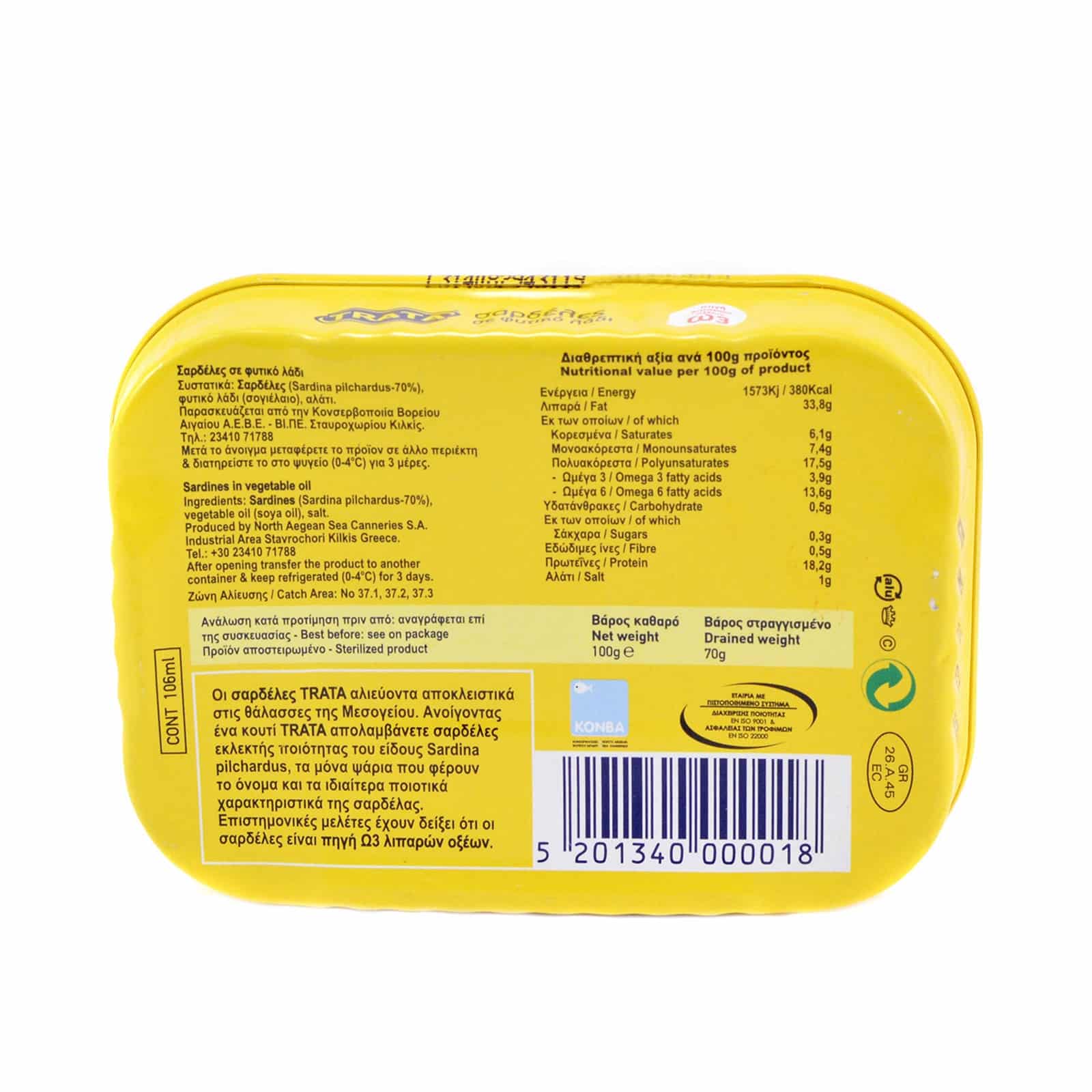 Trata Sardines in vegetable oil / Σαρδέλες σε φυτικό λάδι 100g