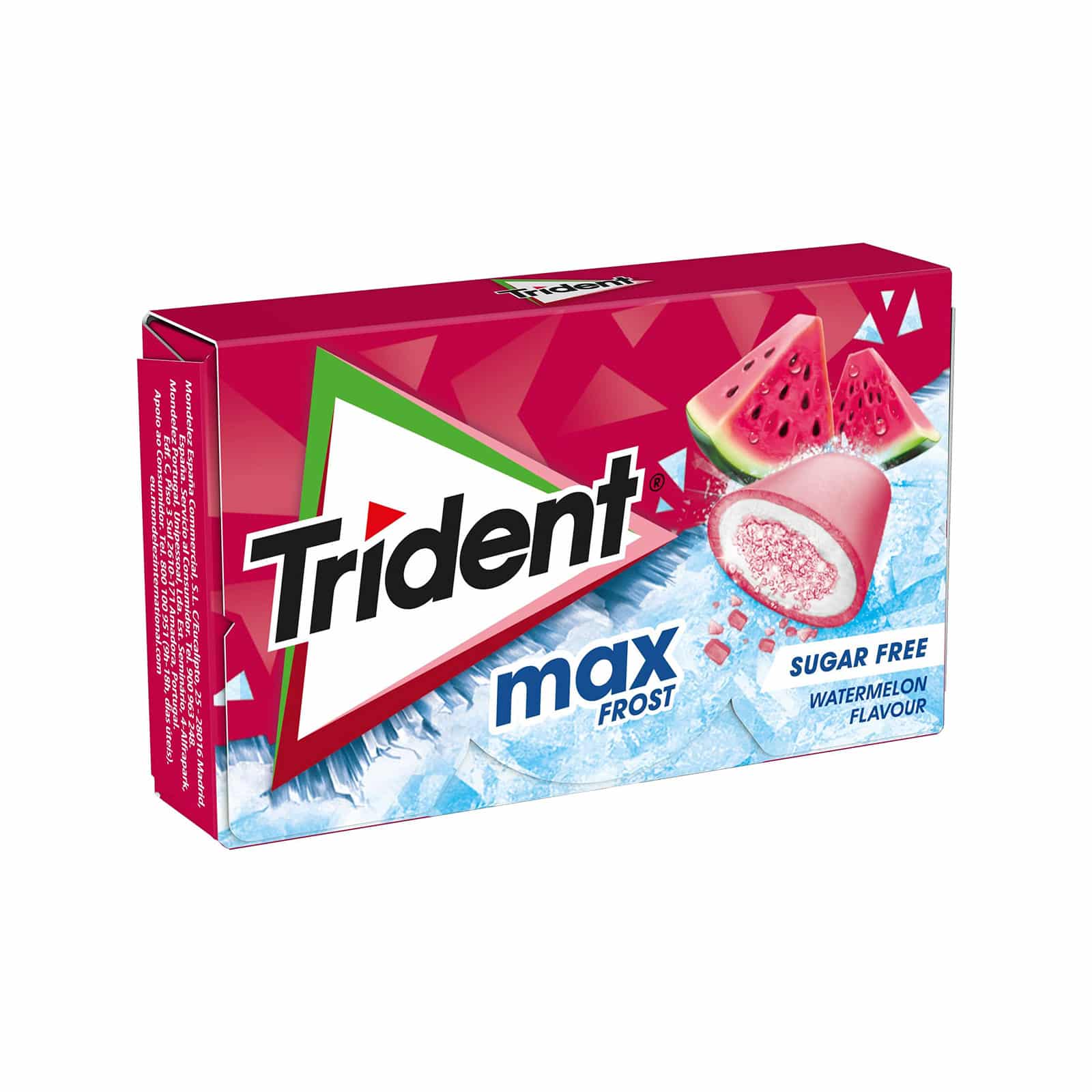 Chew your way to a burst of watermelon freshness with Trident Gums Watermelon Max Frost, the perfect blend of fruity sweetness and cooling frost. Ideal for any time of the day!