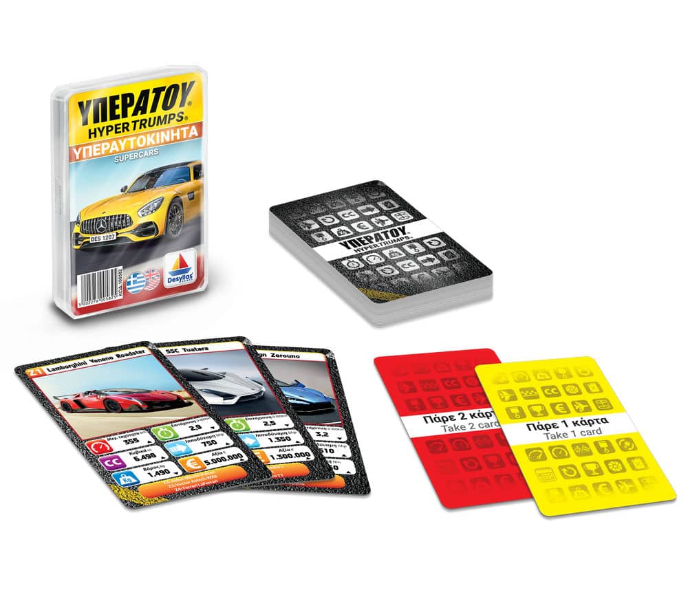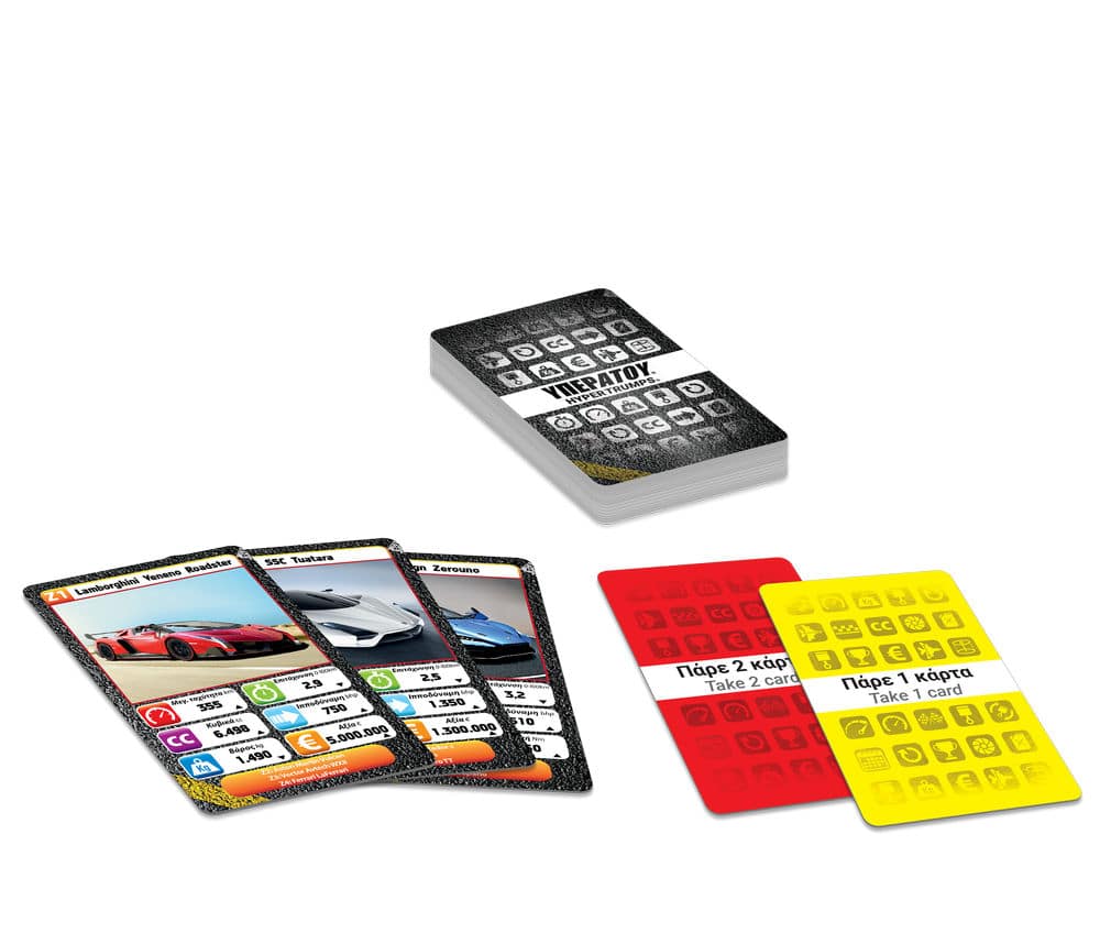 Διάλεξε χαρακτηριστικό, σύγκρινε το με του αντιπάλου, και κέρδισε την κάρτα! Χρησιμοποίησε έξυπνα την κάρτα ΥΠΕΡΑΤΟΥ και βγες μπροστά! Παίξε και μάθε τα πάντα για τα πιο απίστευτα οχήματα και ζώα του πλανήτη!
